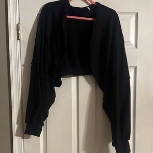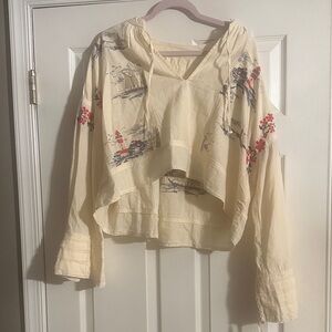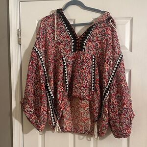 Stylish plaid jacket with floral accents. Button-up front. Perfect for layering.