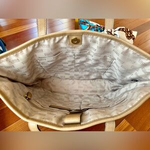 Michael Kors Taupe Tote Bag with Blue Scarf EUC
