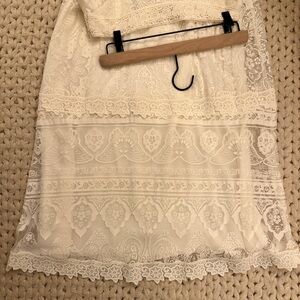 White lace midi skirt is perfect for any occasion. Its intricate design adds a touch of sophistication to your wardrobe. Never worn, new with tags.