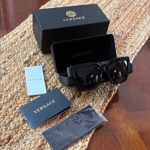 Stylish Versace sunglasses with a glossy black finish. Perfect for adding a touch of luxury to your look.