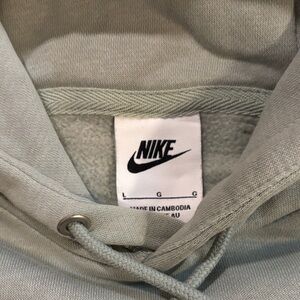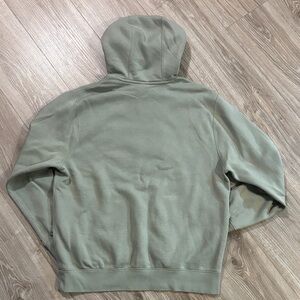 Nike hoodie in sage green. Features bold yellow logo. Comfortable and stylish.