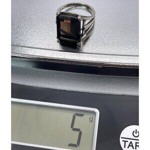 Vintage Smoky Quartz Cocktail Ring 925 Sterling Silver Emerald Cut Size 6.75