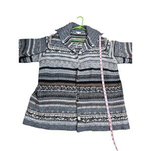 J.Jill Women’s Large Gray Striped Open Front Chunky Knit Cardigan Sweater Cozy
