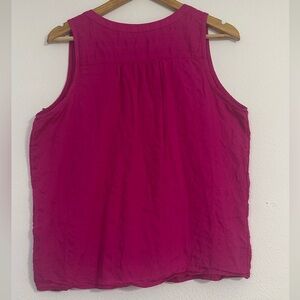 This elegant tank top from LOFT features a sleeveless design in a delightful pink hue, highlighted by a pleated V-neckline that adds texture and sophistication. Crafted from a lightweight, flowing fabric, it offers a relaxed fit perfect for casual wear or layering.