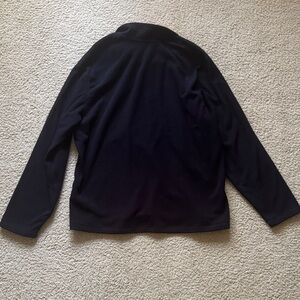 This anti-static fleece has a 1/4 zip and is solid black collar with orange details. It is new with tags.