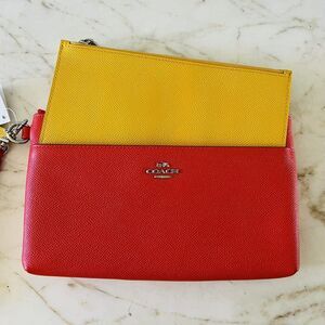 COACH Orange Yellow Color Block Leather Pop Pouch Clutch Wristlet