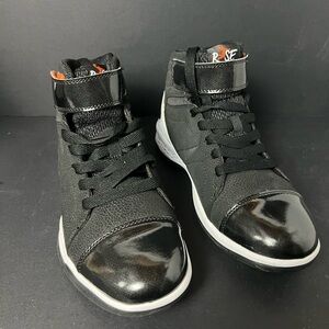 Sleek black men’s size 8 basketball shoes, high top sneakers with a textured design. Ideal for everyday wear,sports. New in box