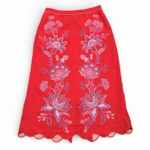 FARM RIO Porcelain Garden Red Linen Midi Skirt Women's size Medium