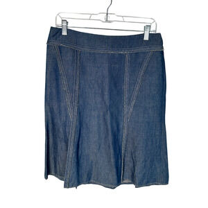Neiman Marcus 10 Lida Baday $1200 Denim Skirt Set Linen Blazer Jean Skirt Blue