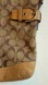 Elegant shoulder bag with Coach's signature pattern. Features adjustable strap and buckle details. Ideal for daily wear.