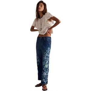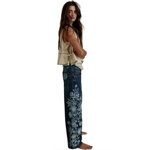 NWT Free People x We The Free Willow Floral Blue Embroidered Boyfriend Jeans 26