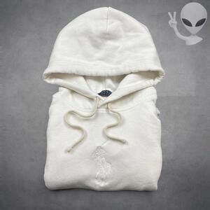 This item is 100% authentic Polo Ralph Lauren and is in good overall condition. The hoodie is clean, fully wearable, and structurally sound with no major damage. Features the classic Polo Ralph Lauren spellout across the chest with a front kangaroo pocket and standard pullover fit. Please refer to the measurements below to confirm fit before purchase.