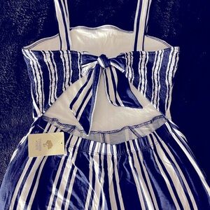 Nordstrom Tucker &Tate Jumpsuit. (Girls/Teens) Size L 10/12. Crop length, Elastic Waist, Tie Back, Navy Blue and White Stripe. See measurements in pics