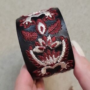 Genuine Lucky Brand leather with beautiful boho gypsy embroidery over genuine leather.
