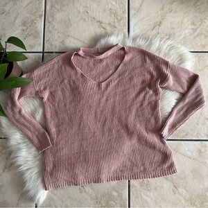 Soft and pretty in pink American Eagle Outfitters loose slouchy knit sweater with faux choker neckline | Cotton wool blend | Gently used, like new condition