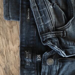 Excellent condition, no rips, stains, or holes that are not factory made. Distressed black skinny jeans with red and black plaid patches behind the distressing - no actual skin will show. Ankles can be cuffed to show the plaid at the bottom. Super cute and stretchy and will still keep you warm due to the holes being covered. Size 3/26. Smoke free home.