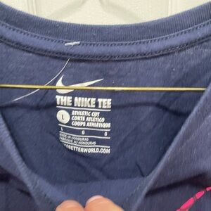 Comfortable Nike tee with a striking pink swoosh. Ideal for casual wear.
