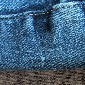 These jeans have only been worn a few times. There is slight fraying along the bottom of the legs as pictured and some pulling of the fabric along the right hip, also pictured in the final image. I'm 5'2" and the jeans reach my ankles so the fit will vary based on your height.