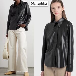 Nanushka Naum Okobor Alt-Leather Top in Black Vegan Faux Leather