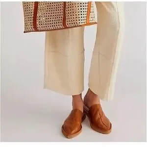 Free People Nova Flat Pebbled Leather Top Stitched Pointy Toe Mules size 7