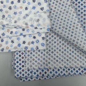 9 piece cotton fabric bundle in beautiful pastel and bright colors. Gingham, prints, plaid/check, and more. Fabric sizes are listed on the edges and pictured. Very high quality fabric ready for your next sewing project!