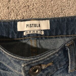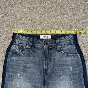PISTOLA Sierra High-Waisted Side Stripe Distressed Denim Mini Skirt – Size 25