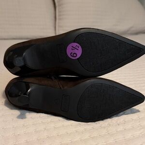 Elevate your wardrobe with these kitten heel brown ankle boots. Side zip for easy in and off. Perfect for gorgeous slacks, skirt, jeans or dress. Beautiful! Priced right. Size 6.5. No box.
