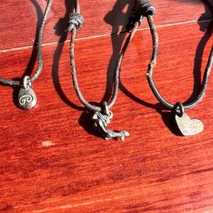 Discover the elegance of this artisan leather bracelet featuring a charm. The brown tones offer a rustic appeal, perfect for any occasion. Good amount of tarnish. Could be cleaned up. Brand new leather cords. Poor Cat is a small company in NJ. Each bracelet was purchased for $150-$200.