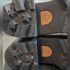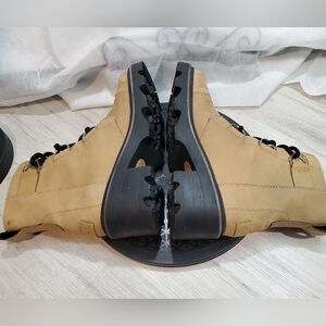 Stylish Sorel Camel leather Combat Boots Rugged Lug design with lace-up front. Ideal for everyday wear.