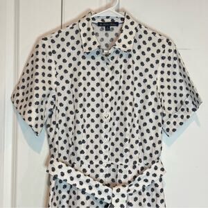 Brooks Brothers White Blue Floral Print Short Sleeve Belted Midi Shirt Dress 8
