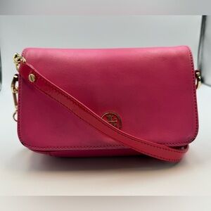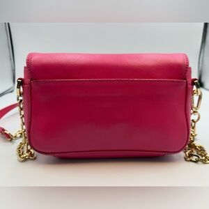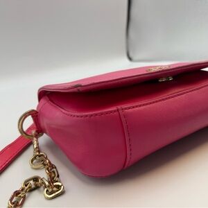 Pink leather crossbody bag with gold hardware