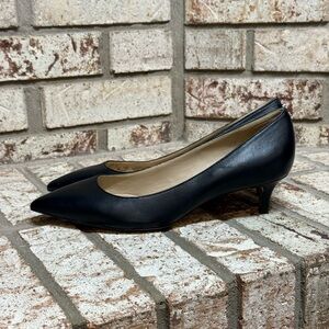 Sam Edelman Dori Black Nappa Leather Kitten Heel Pointed Toe Slip On Pumps