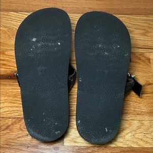 Chic Zara sandals featuring a black base and striking brown/silver buckles.