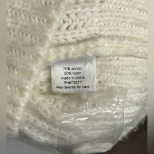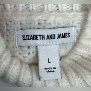 Elizabeth and James cream cable knit sweater in size Large. Features a chunky knit construction with a mock neck collar and textured cable detailing along the front. Cropped, boxy silhouette with ribbed cuffs and hem. Soft knit feel.