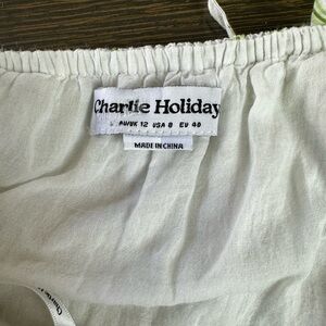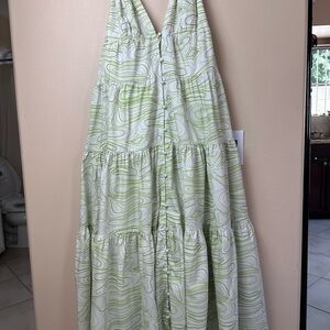 Charlie Holiday Green and White Ruffled Tiered Maxi Dress