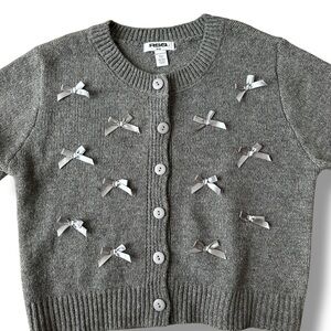 RSQ Gray Crewneck Cardigan Sweater with Bowties Sz L