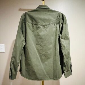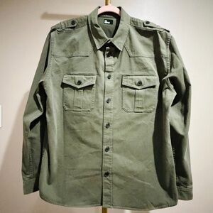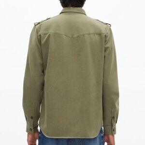 Brand new with tags, this The Kooples officer-style overshirt delivers a sharp, military-inspired look with modern edge. Crafted in a versatile army green shade, it’s perfect for layering as a lightweight jacket or wearing as a structured shirt for an elevated casual style.