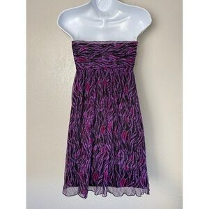 Express purple silk Y2K strapless animal print mini dress 8