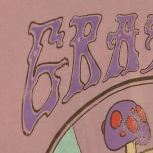 Short sleeve tee with 'Grateful' graphic. Features mushrooms and butterfly design. Soft and comfortable fabric.