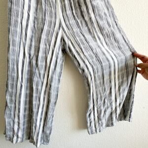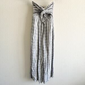 L*Space Riri Strapless Wide‑Leg Jumpsuit XS Gray White Stripe Smocked tie