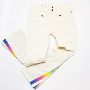 Rare Perfect Moment Aspen Cream Off White Chevron Aurora Rainbow Zipper Hem Bootcut Flare Snowboard Ski Winter Pants