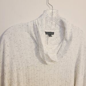 Women's lightweight, athleisure turtleneck flowy cape by Lane Bryant, size 12/16. Fabric blend of polyester, rayon and spandex. Ribbing or vertical stripes down front and back.. Excellent pre-owned condition; no flaws.