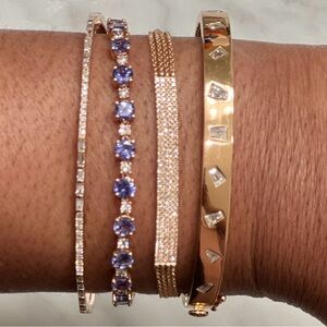 Last two pics are of similar bracelets for styling ideas. My bracelet is unique in that the diamond bar is longer and thinner for a more upscale look with more wrist coverage, and the bar is curved to lay nicely on the wrist. Anne Sisteron always adds these little touches to make her jewelry feminine, comfortable, and elegant.