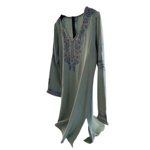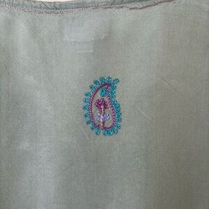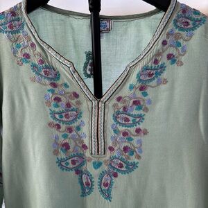Boho Embroidered Green/Periwinkle/Lilac/Mauve Women's Tunic V-Neck Size Large