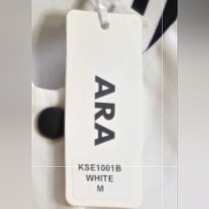Stylish Ara varsity jacket with bold black and white design. Features classic striped accents and a prominent letter patch.