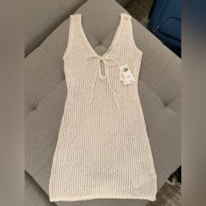 Stay stylish at the beach with this elegant cream knit swim cover-up. Perfect for adding a touch of sophistication to your swimwear ensemble.
