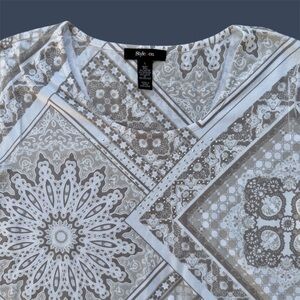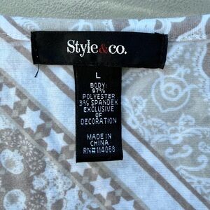 Style & Co. Taupe Medallion and Geometric Print Fringed Hem Knit Top, Women’s L