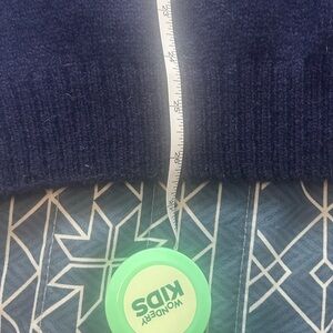 Cozy navy sweater with cream and multicolor pattern. Perfect for chilly days.