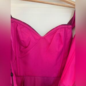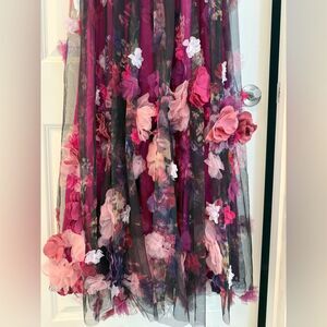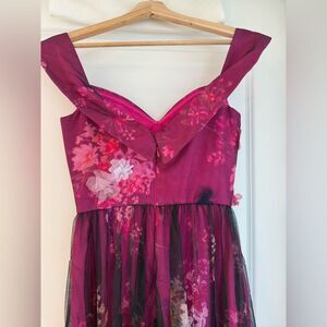 NWT Dress the Population Aurea Floral Print Off the Shoulder Gown Magenta Multi