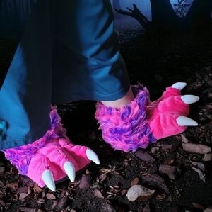 Lazy One Monster White Claw Paw Pink Halloween Costume Night Time Cozy Slippers